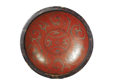 上海博物館藏彩繪云鳳紋漆圓盤(pán)。