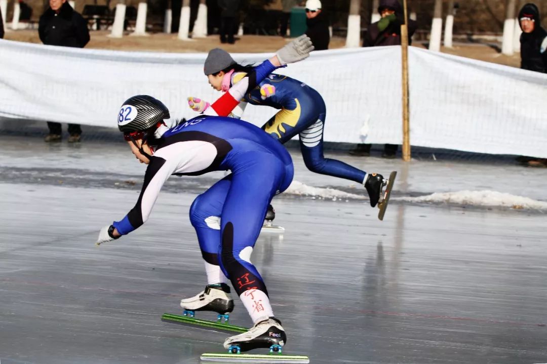 2019-01-29,遼寧撫順。2019年遼寧省青少年速度滑冰錦標賽上,戴頭盔穿著短道速滑冰刀與穿著速滑脫位冰刀的兩位運動員正在同場競技。作者:周朋