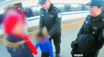 鐵警把孩子交還母親。警方視頻截圖