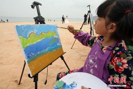 資料圖:認真作畫的小朋友。中新社記者 李進紅 攝