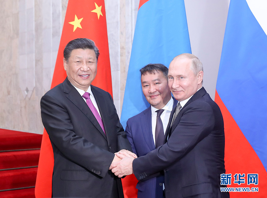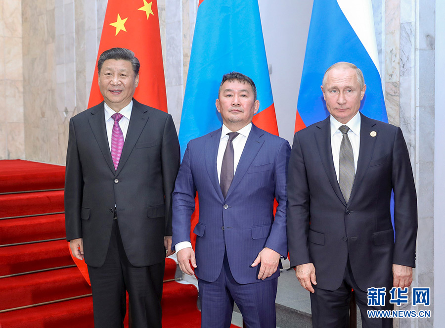 習近平指出,今年中方將分別同俄蒙兩方慶祝建交70周年,中俄蒙三方合作將迎來新的機遇。在當前國際上保護主義、單邊主義抬頭背景下,三方要堅定促進區域合作、實現共同發展的目標,圍繞三國發展戰略對接這條主線,推進各領域全面合作,共同釋放三國維護多邊主義、打造開放型世界經濟的積極信號。
