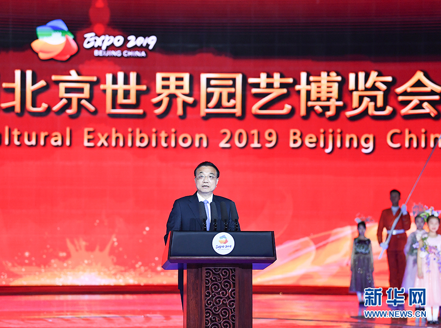 李克強(qiáng)宣布,2019年中國北京世界園藝博覽會(huì)閉幕。