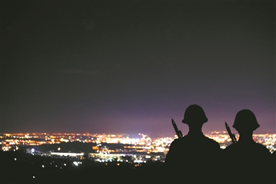 夜深邃,山下遠方,霓虹如星閃爍,輝映著山上忠誠守望的身影。劉 暢攝