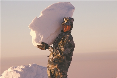 山頂終年風大雪勁,冬雪襲來,次日清晨官兵只得一次次扛起雪塊,清理通往陣地的山路。