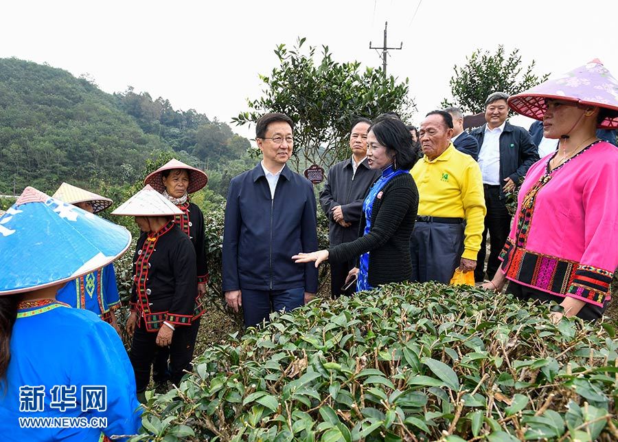 在五指山椰仙有機茶生態觀光園,韓正了解高山雨林有機茶種植等特色產業培育、病蟲害物理防治、種植產業和旅游產業融合發展等情況,與正在茶園工作的當地農民和貧困戶交流。韓正指出,要充分發揮海南地理條件和生態系統的獨特優勢,挖掘生態保護蘊含的經濟價值,大力發展綠色生態產業,推動農民增收致富。