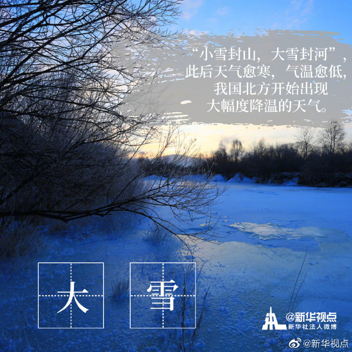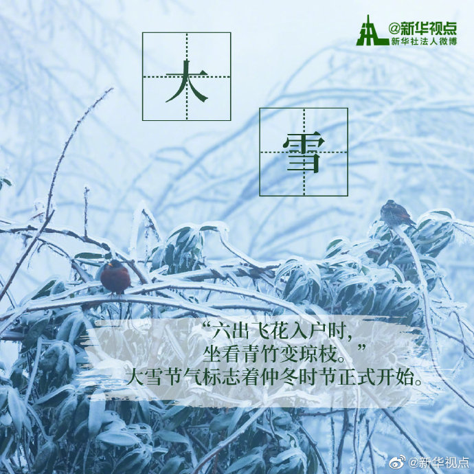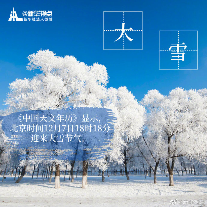 “白雪紛紛何所似?未若柳絮因風起。”今天18時18分迎來“大雪”節氣。相較于“小雪”節氣,“大雪”節氣時,氣溫不斷下降,雪量不斷增大,下雪天數不斷增加。天氣漸冷,注意添衣保暖。?