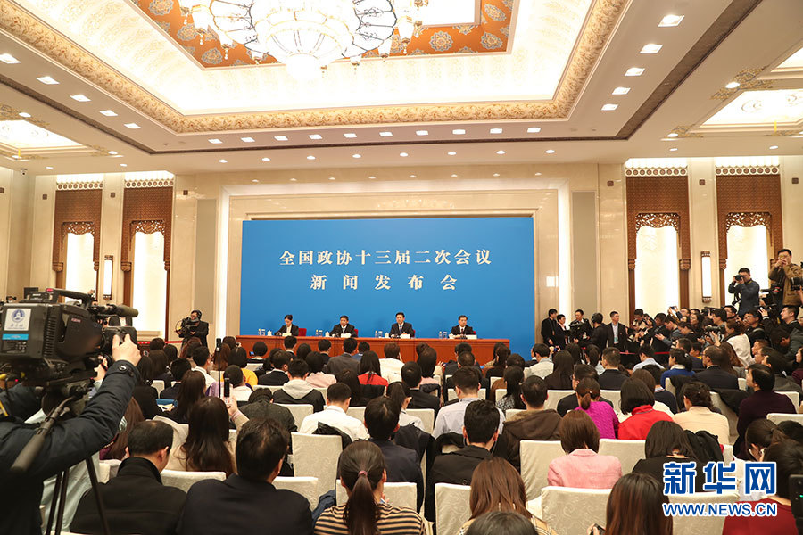 全國(guó)政協(xié)十三屆二次會(huì)議新聞發(fā)布會(huì)于3月2日15:00在人民大會(huì)堂一層新聞發(fā)布廳召開(kāi),大會(huì)新聞發(fā)言人郭衛(wèi)民向中外媒體介紹本次大會(huì)有關(guān)情況并回答記者提問(wèn)。圖為新聞發(fā)布會(huì)現(xiàn)場(chǎng)。新華網(wǎng)/中國(guó)政府網(wǎng) 陳杰 攝