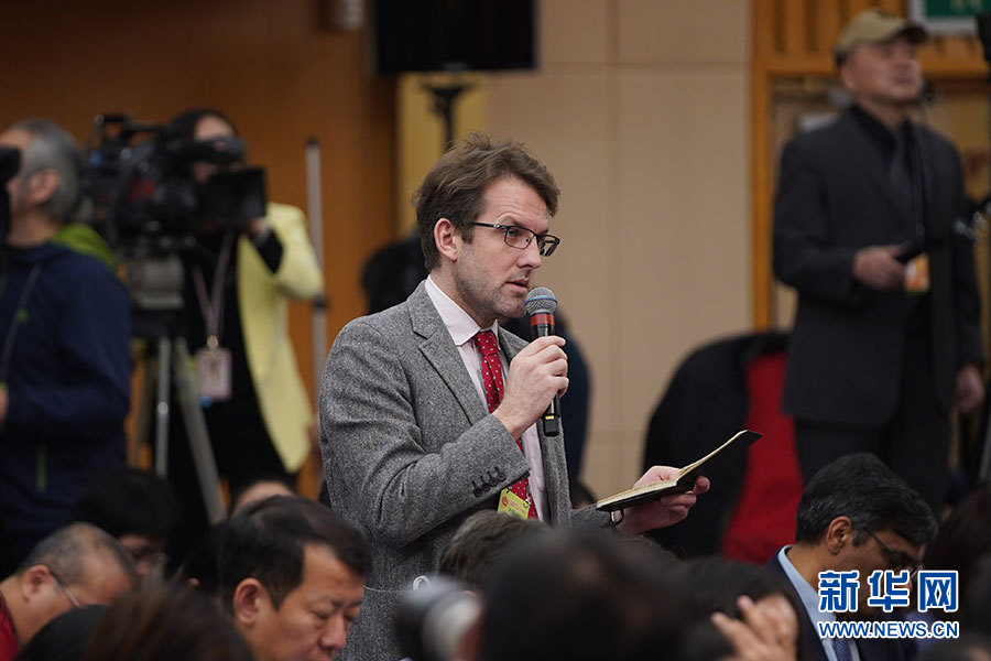 ????十三屆全國人大二次會(huì)議新聞中心3月7日9時(shí)在梅地亞中心新聞發(fā)布廳舉行記者會(huì),邀請財(cái)政部部長劉昆,副部長程麗華、劉偉就“財(cái)稅改革和財(cái)政工作”相關(guān)問題回答中外記者提問。圖為彭博新聞社記者提問。新華網(wǎng)/中國政府網(wǎng) 劉廈 攝