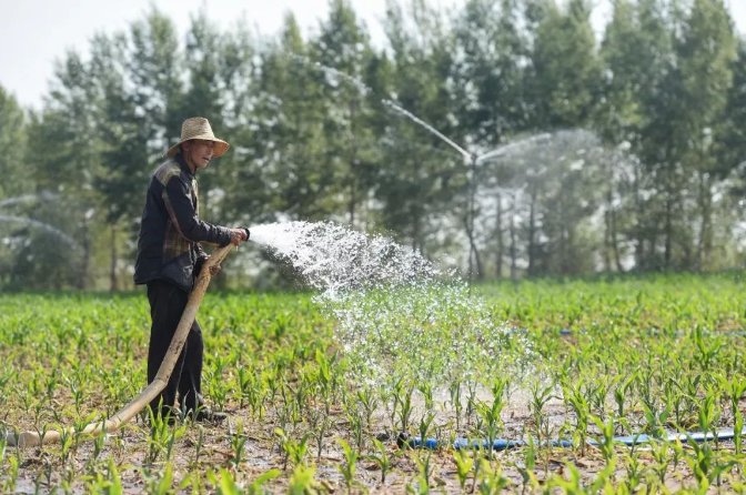 內蒙古東部地區一名農民在灌溉玉米秧苗 連振 攝