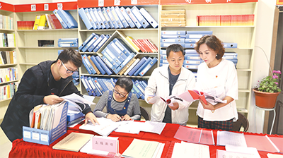 2019年是基層減負(fù)年,新疆庫車縣實(shí)行“基層一張表”試點(diǎn)改革,圖為干部到健康路社區(qū)匯總檔案報(bào)表。