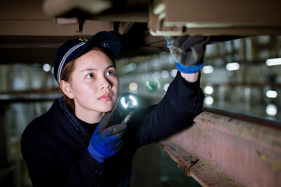 “我們這個崗位最重要的是細(xì)心,車底螺絲是否移位、電纜接頭是否松動,不敢放過一個細(xì)節(jié),比如說動車底盤的天線,遇到北方冰凍雨雪天氣時,易被冰塊砸出裂紋,如沒及時發(fā)現(xiàn),將會對列車信息傳輸造成直接影響。”向念說。