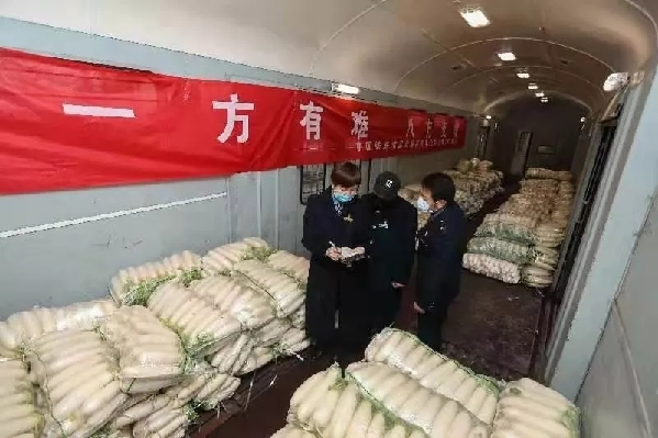 為了積極支援武漢地區,南昌局集團公司第一批采購的160噸蘿卜,第一時間通過T147次、T168次列車行包車廂運往武漢地區,從1月25日大年初一起,每日持續運送。為保障這次重點物資運輸任務的順利實施,南鐵積極協調物資供應商、中鐵快運、裝卸公司等部門,開辟綠色通道,調整列車股道安排,增加列車武昌站停靠點,為裝卸作業提供條件。