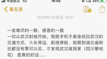 “經(jīng)歷約1872公里的我已平安到達(dá)武漢,這一路我遇見了很多可愛的人,列車長、車站工作人員……他們都在為武漢打氣加油,人間自有真情在!”1月26日,白衣天使郎冰凝在自己的手機(jī)里敲出了一段動(dòng)人的文字,文字的背后是鐵路人傾情護(hù)送她奔赴武漢的暖心故事。