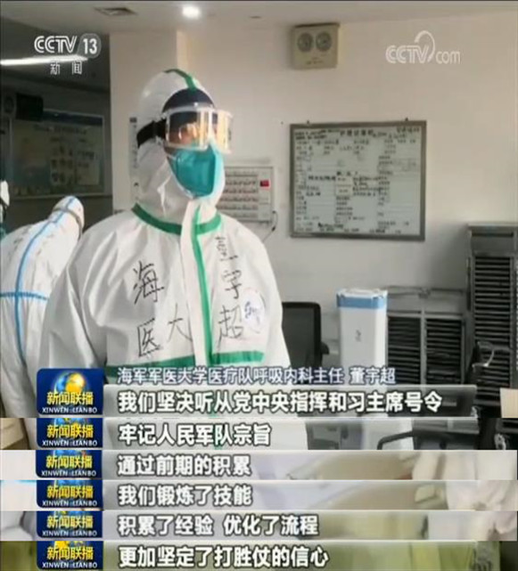 習(xí)主席向全軍發(fā)出的號令,給全軍官兵以極大鼓舞和有力動員。疫情發(fā)生后,人民軍隊(duì)堅(jiān)決落實(shí)習(xí)主席重要指示,在黨中央和中央軍委統(tǒng)一指揮下,聞令而出、迅疾行動。我軍迅速啟動聯(lián)防聯(lián)控工作機(jī)制,緊急抽組精兵強(qiáng)將奔赴疫情防控第一線,各項(xiàng)救治工作有力有序有效展開。