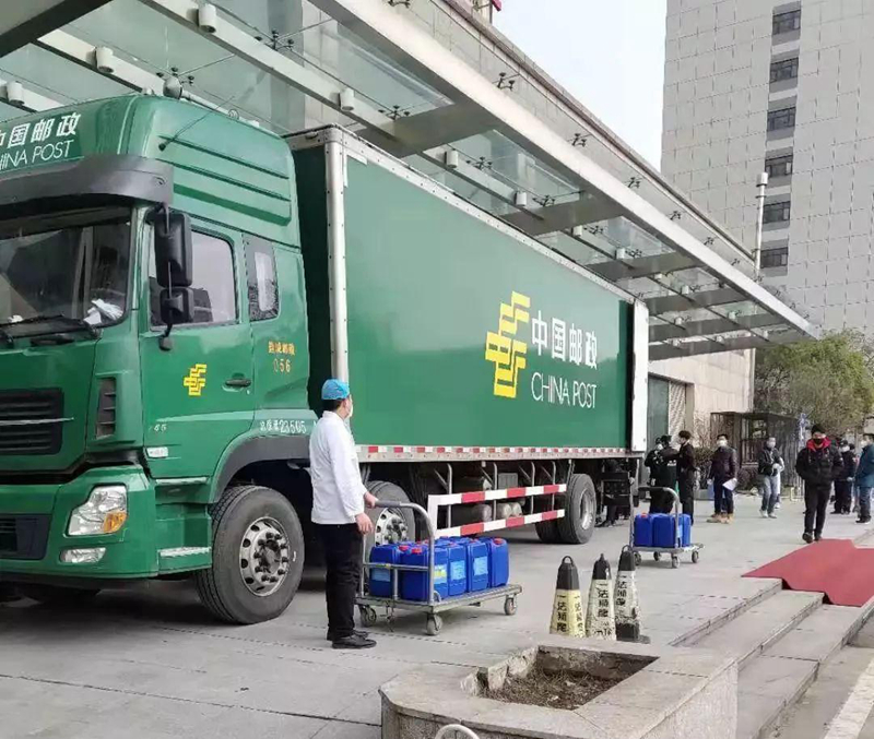 下了機(jī)場(chǎng)高速公路20多公里后順利抵達(dá)武漢郵區(qū)中心局,電話聯(lián)系了調(diào)度人員,直到這時(shí)我倆才知道,此行的目的地是武漢市疫情高危區(qū)——武漢大學(xué)中南醫(yī)院,車上的醫(yī)護(hù)用品是用來(lái)對(duì)感染病區(qū)進(jìn)行消毒的。當(dāng)時(shí)中南醫(yī)院物資緊缺,在全國(guó)各地遍尋支援,幾百公里外的江蘇鹽城援助了這珍貴的一車物資。