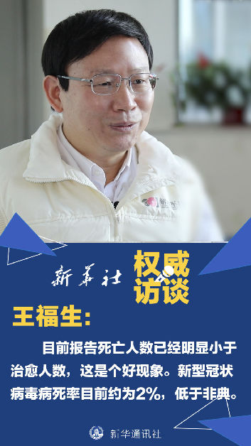 王福生:死亡人數現在已經比治愈人數少,這是一個好的現象。但總的來說,死亡人數主要是來自于新型冠狀病毒感染的重癥病人和危重癥病人,總體病死率也就在2%左右,并不是特別高。