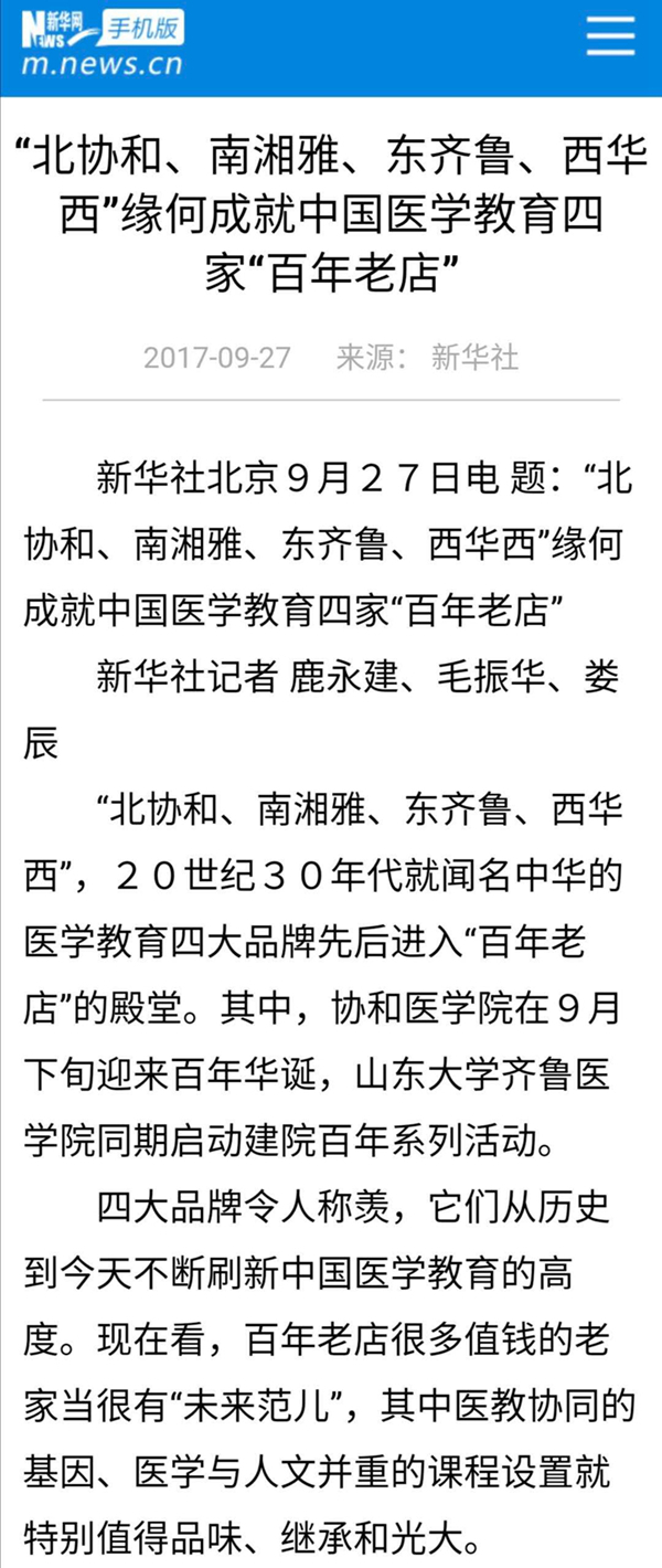 新華社有篇報道把它們稱為中國醫(yī)學教育四家“百年老店”,是20世紀30年代就聞名中華的醫(yī)學教育四大品牌。它們從歷史到今天不斷刷新中國醫(yī)學教育的高度。↓↓↓