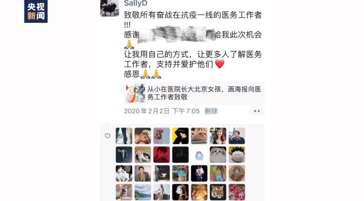 方璇,北大醫學部一名90后解剖學老師,平時很喜歡畫畫。這次漫畫的創作緣于北大人民醫院護士長朱錦玲的一個請求:為馳援武漢的同事池艷宇畫張漫畫。方璇也和艷宇共事過,在她眼中:艷宇工作認真,善良漂亮??吹狡G宇發來的自拍照和拿著國旗的全身照,方璇來了靈感:“為了不遮住她那雙笑起來彎彎的眼睛,我沒畫護目鏡,就只畫了口罩。艷宇姐,向你致敬,等你回家!”