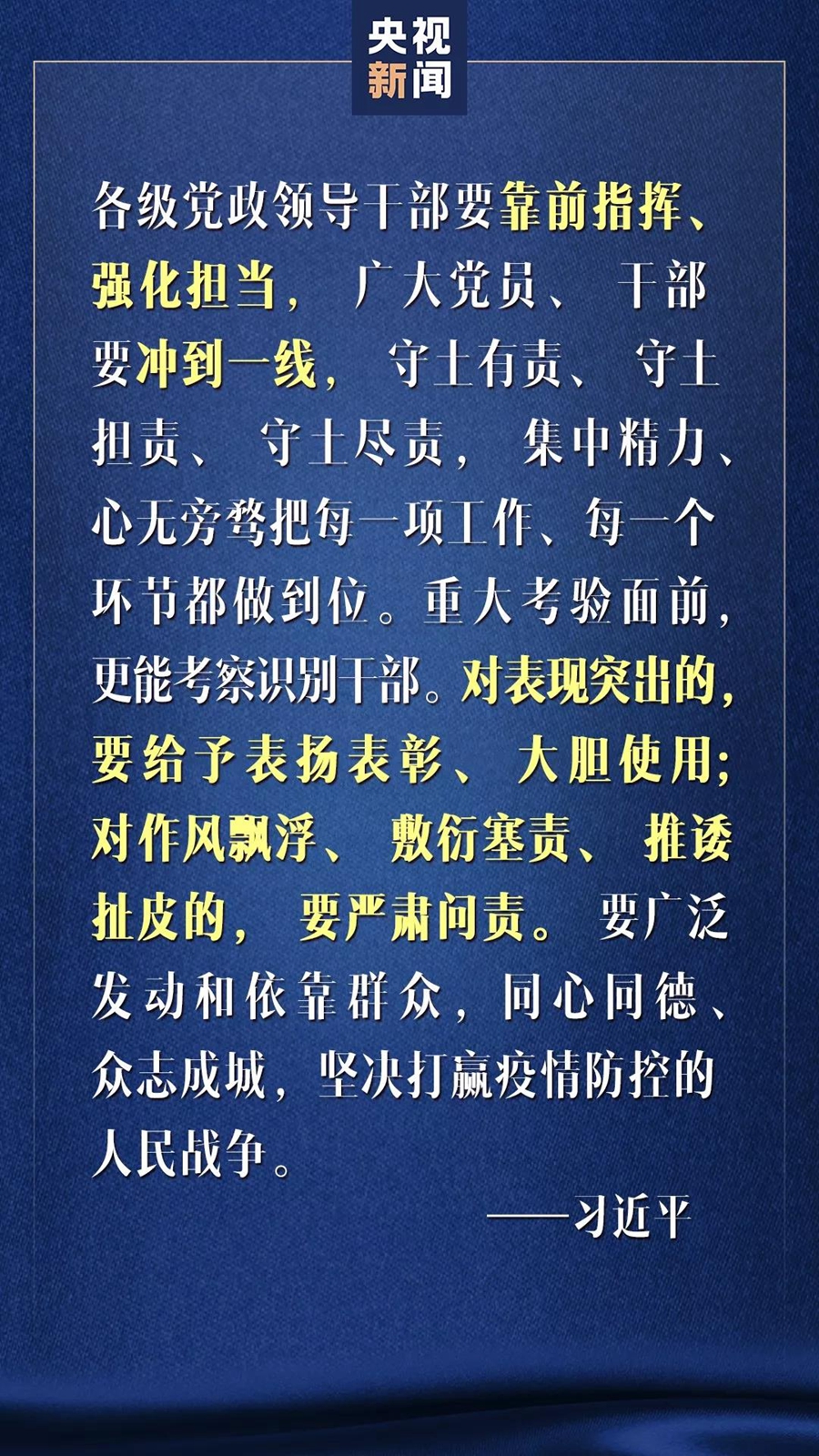 2月10日,中共中央總書記、國家主席、中央軍委主席習近平在北京調研指導新型冠狀病毒肺炎疫情防控工作。關于疫情防控,習主席說了些什么?通過一組海報,一起了解。