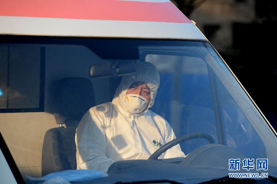 2月12日,陳曉亮在等候轉運病人。陳曉亮是安徽省蚌埠市緊急救援中心的一名救護車駕駛員,也是有著19年黨齡的黨員。新冠肺炎疫情發生后,陳曉亮自愿加入救援中心組建的“黨員青年突擊隊”,從2月1日開始,24小時待命,隨時準備轉運新冠肺炎確診患者。和確診患者同乘一車,增加了感染風險,但是陳曉亮顧不上那么多。“危險的工作總要有人做,希望疫情早點結束,救護車再拉不到一個確診患者。” 陳曉亮說。 新華社發(黃博涵 攝)