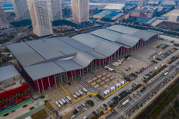 武漢客廳方艙醫院外景。(新華社發 董宏祥攝)
