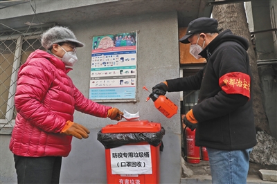 據北京市城管委介紹,在定點醫院、發熱門診、社區衛生站、疑似病例的觀察場所等地使用過的口罩,應直接投入醫療廢物垃圾桶。