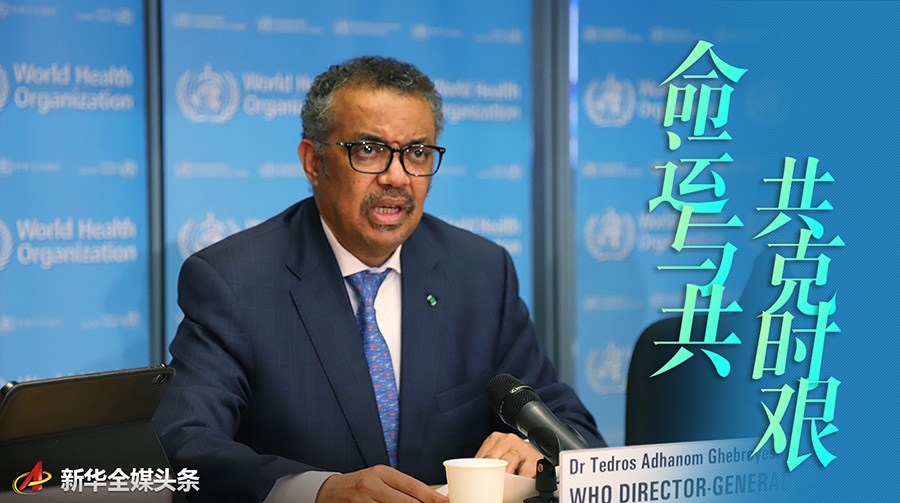2月17日,在瑞士日內瓦,世界衛生組織總干事譚德塞在世衛組織有關新冠肺炎的例行記者會上發言。新華社記者 陳俊俠 攝