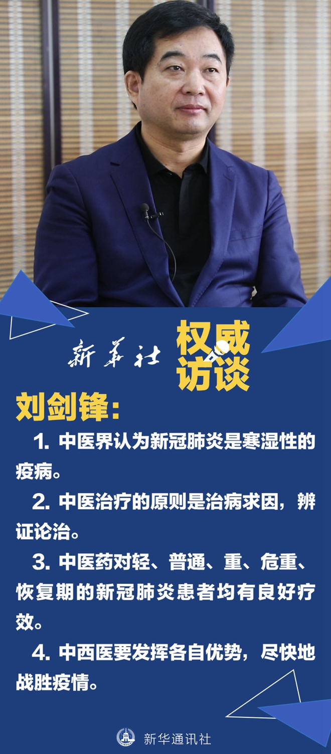 劉劍鋒:我們中醫界認為新冠肺炎是寒濕性的疫病,是由于寒邪和濕邪導致的疫病,叫寒濕疫。