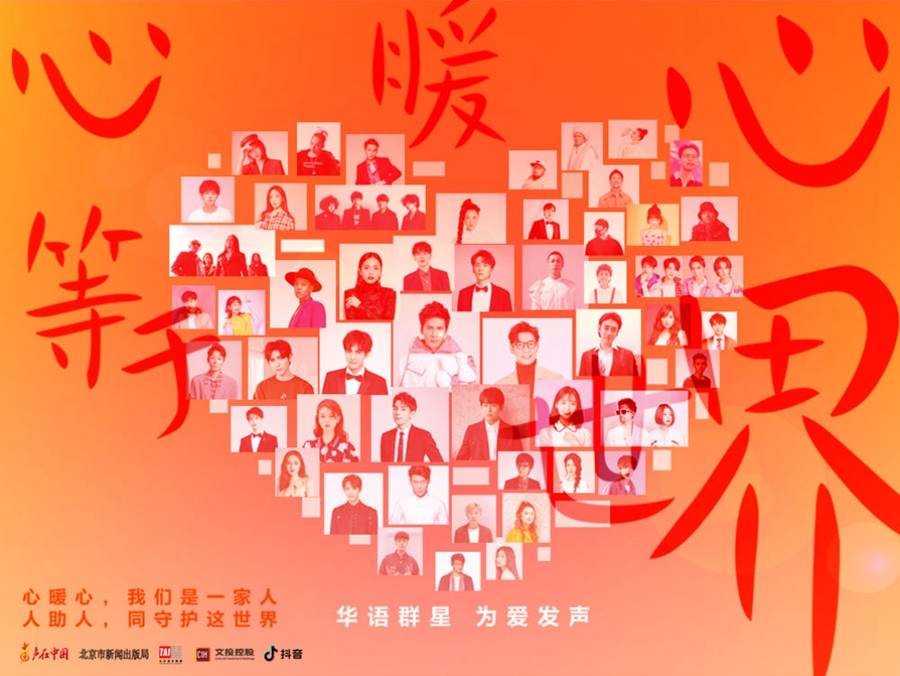 《心暖心等于世界》由新華社“聲在中國”、太合音樂集團等多家單位共同出品,集結大張偉、品冠、劉惜君、阿云嘎等70位志愿者共同完成,用溫暖的歌聲向一線醫護工作者致敬,為努力抗擊疫情的每個人加油。心暖心溫暖人間,人助人守護世界。