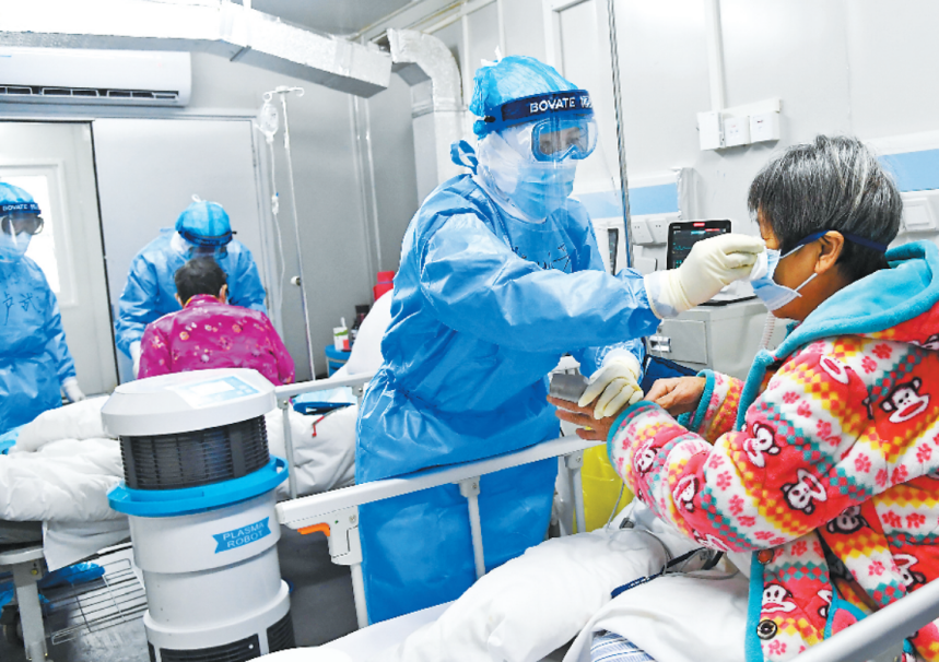 火神山醫(yī)院重癥醫(yī)學一科自2月10日開始收治重癥患者以來,全科醫(yī)護人員不畏風險全力救治,他們根據(jù)患者病情的變化,有預(yù)見性地快速調(diào)整救治方案,采取呼吸支持、抗病毒、維護臟器功能、加強營養(yǎng)等方法,使重癥患者逐漸有了好轉(zhuǎn),提高了救治成功率。互相鼓勵點贊,是在重癥室看到最多的場景。解放軍報記者王傳順 攝