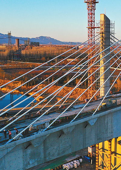 3月15日,中鐵三局施工人員正在京沈高鐵北京段潮白河特大橋施工。記者 賀 勇攝