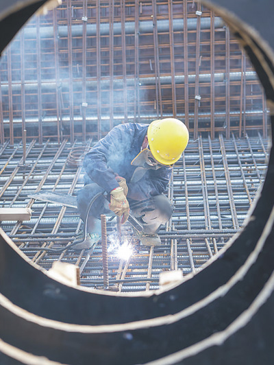 3月6日,工人在位于山西晉中市榆次區的太焦高鐵晉中特大橋項目施工現場作業。新華社記者 楊晨光攝