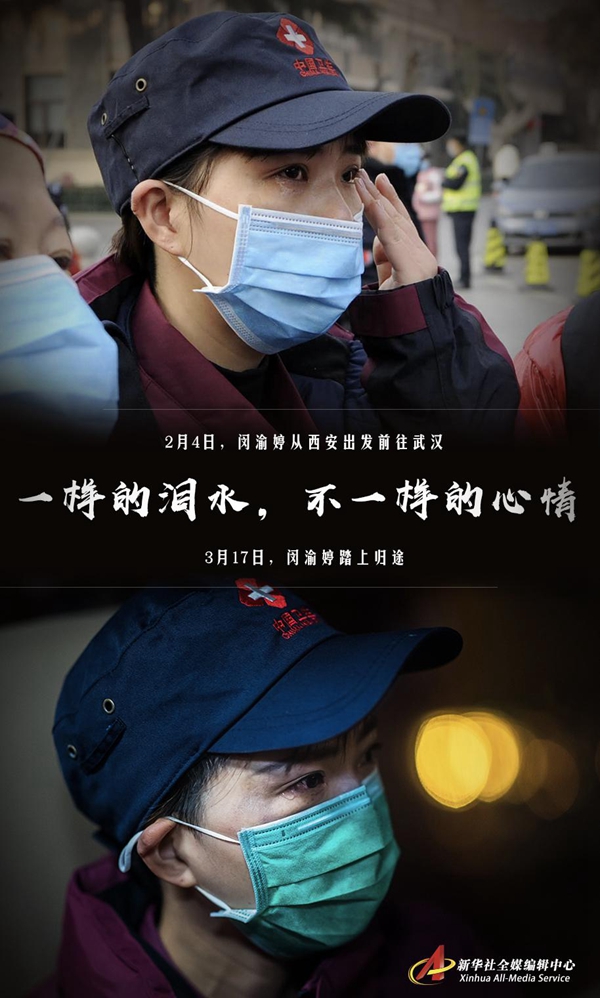 3月17日,陜西國(guó)家緊急醫(yī)學(xué)救援隊(duì)踏上返程。隊(duì)員閔渝婷忍不住落淚。