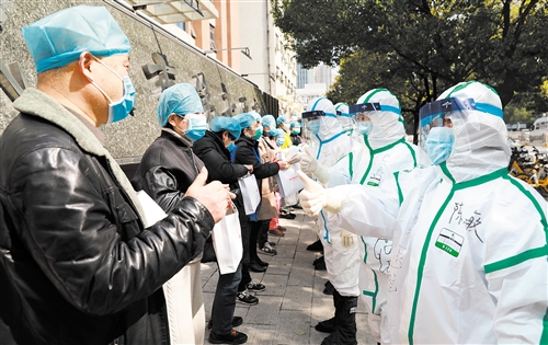 2月2日,第七醫院出現首例治愈出院患者;2月18日,第七醫院首次達到入出院平衡,開始出現“床等人”現象;3月14日,第七醫院最后一批新冠肺炎患者出院。無論是醫者,還是患者,這一路都走得異常艱辛,所有的辛苦、希望和守候,最后都化作彼此間深深的祝福。