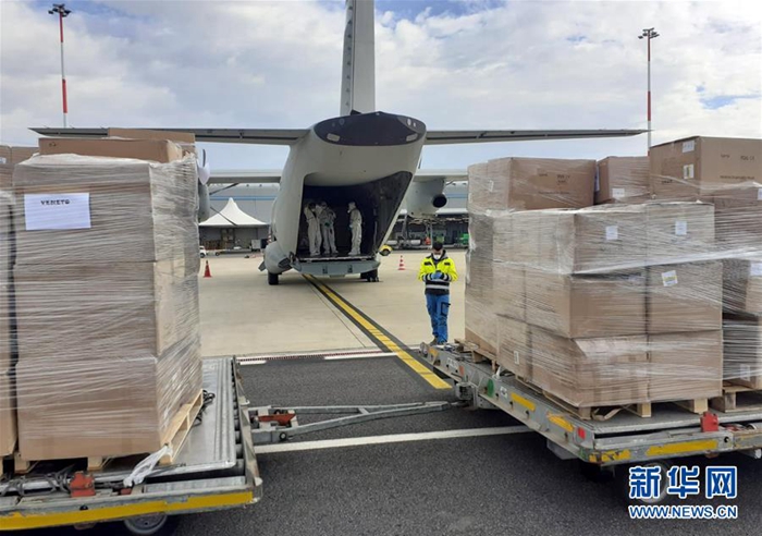 這是在意大利羅馬的菲烏米奇諾機場拍攝的從飛機上卸下的醫療物資(3月30日攝)。新華社發