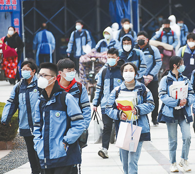 3月30日,內蒙古自治區高三和初三年級共37.1萬名學生重返校園,同步開學復課;初高中其他年級、中等職業學校和小學、幼兒園、特殊教育學校根據綜合評估研判情況,漸次錯時開學復課;高等院校按教育部統一部署安排開學復課。