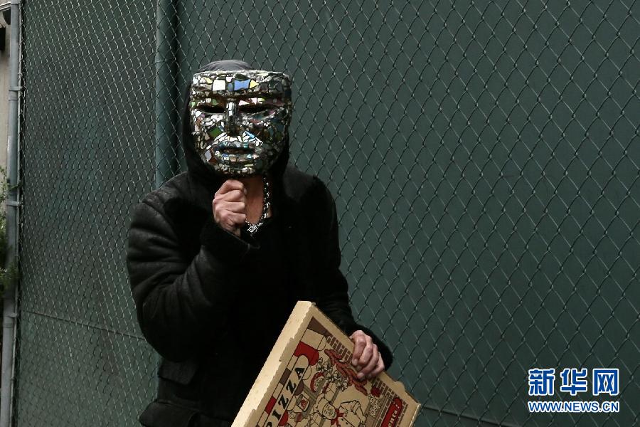 4月10日,一名青年男子用一個面罩遮臉走在美國洛杉磯的街道上。 為減緩新冠病毒的傳播,洛杉磯市長7日下令,民眾在公共營業場所要戴口罩或用織物遮擋住臉,這一行政令于2020年4月10日生效。 新華社發