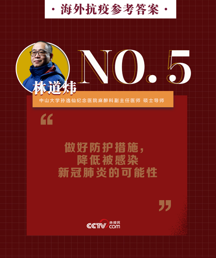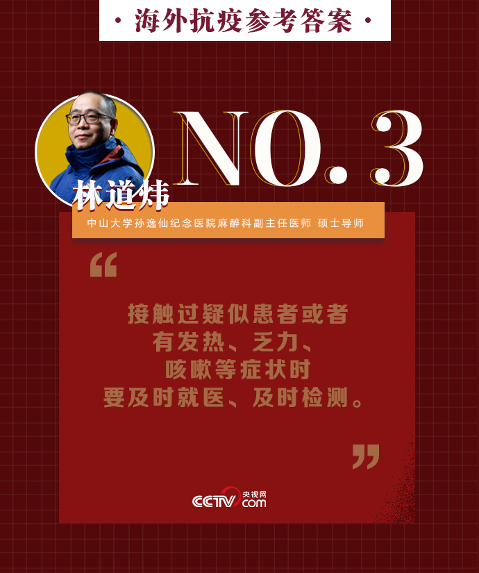 新冠肺炎疫情在全球持續(xù)暴發(fā),海外同胞如何做好基本防護(hù)、保證自身安全?出現(xiàn)焦慮緊張的負(fù)面情緒該如何緩解?中山大學(xué)孫逸仙紀(jì)念醫(yī)院麻醉科副主任醫(yī)師、碩士導(dǎo)師林道煒?biāo)蜕嫌埠斯ヂ裕捍骺谡帧⒆⒁馐中l(wèi)生、減少與人接觸。做好這些,新冠病毒不可怕。