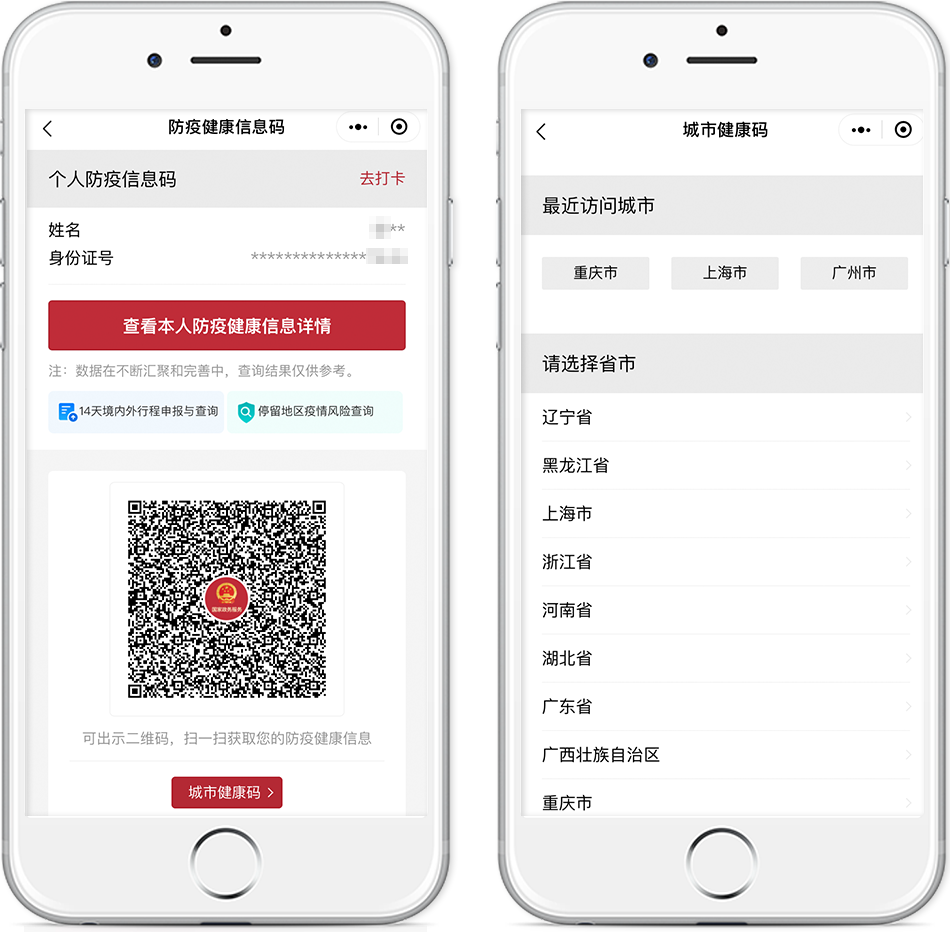 “防疫健康信息碼”為你的跨省出行保駕護航,關聯全國31個省(區、市)及新疆生產建設兵團防疫“健康碼”信息,實現了信息共享和互通互認,全國絕大部分地區可“一碼通行”。