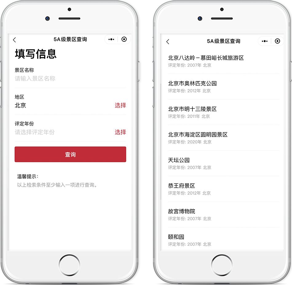 進入服務后,只需選擇出行地區,即可查詢該地區所有5A級景區,方便大家快速查找熱門景點,為你的出行提供參考。
