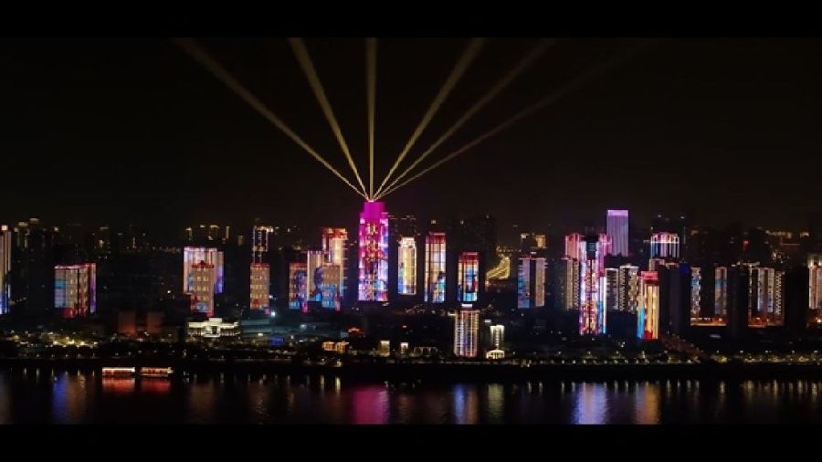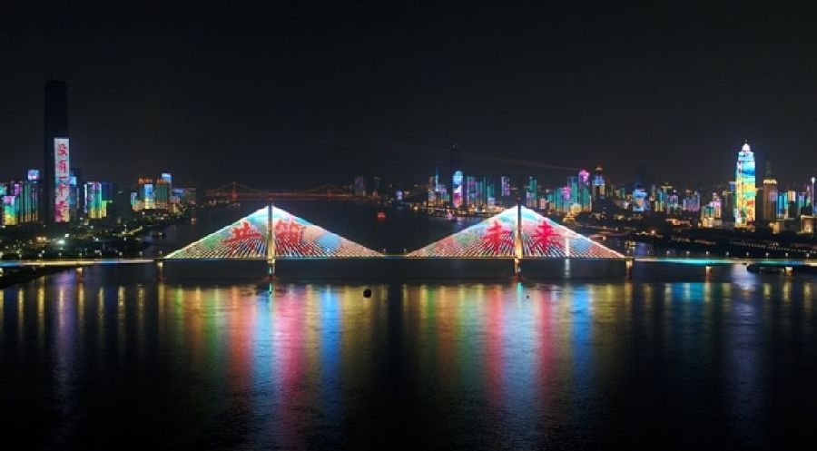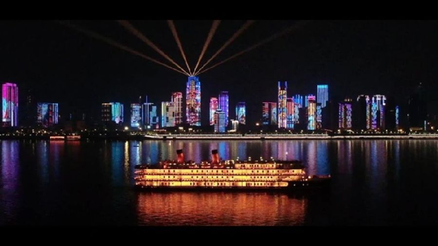來自這座城市的滿滿謝意,將長江裝點(diǎn)成閃耀的“銀河”,與星空交相輝映。