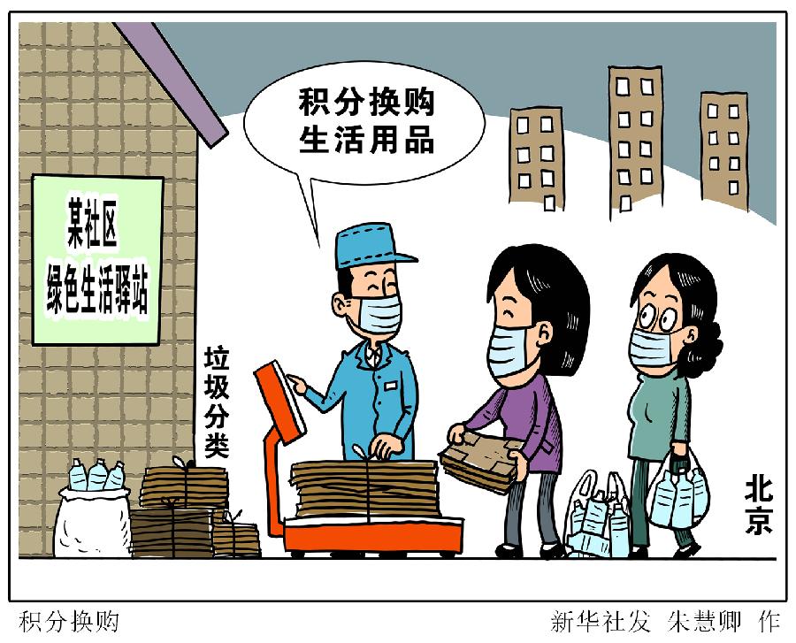 新華社北京5月3日電? 題:積分換購生活用品 “兩桶一袋”征求民意——北京部分社區垃圾分類見聞
