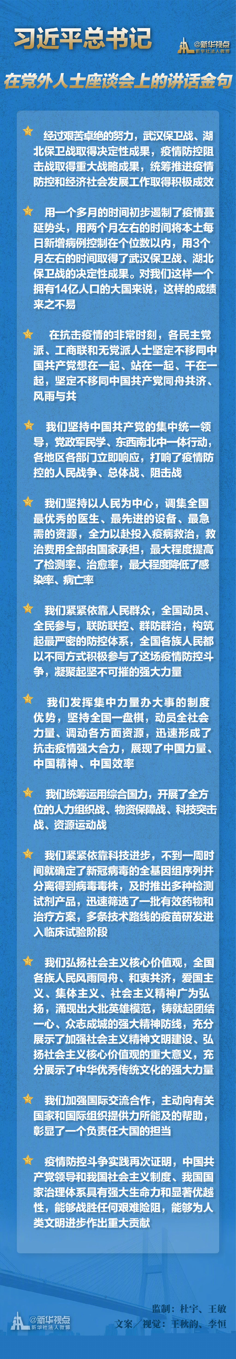 5月8日,中共中央在中南海召開黨外人士座談會,就新冠肺炎疫情防控工作聽取各民主黨派中央、全國工商聯和無黨派人士代表的意見和建議。在會上,習近平總書記的重要講話鼓舞人心! ?????