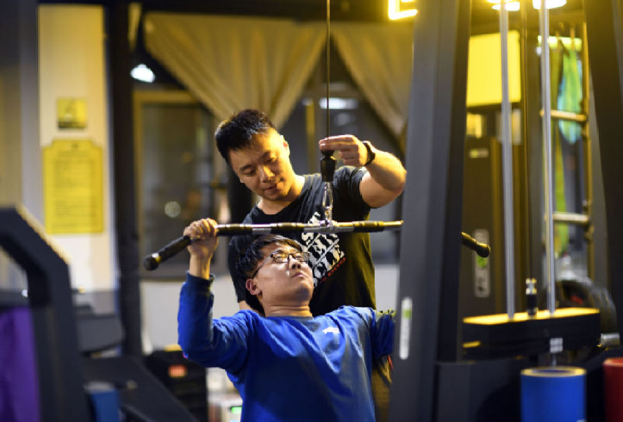 1月10日,市民在北京通州梨園東郎產(chǎn)業(yè)園一家健身房鍛煉。不久后,新冠肺炎疫情導致健身場所大面積停業(yè) 金良快/攝