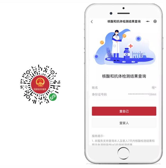 查家人:本服務還支持通過證件號實名查詢家人相關檢測結果信息,點擊“查家人”一鍵查詢,全家安心。