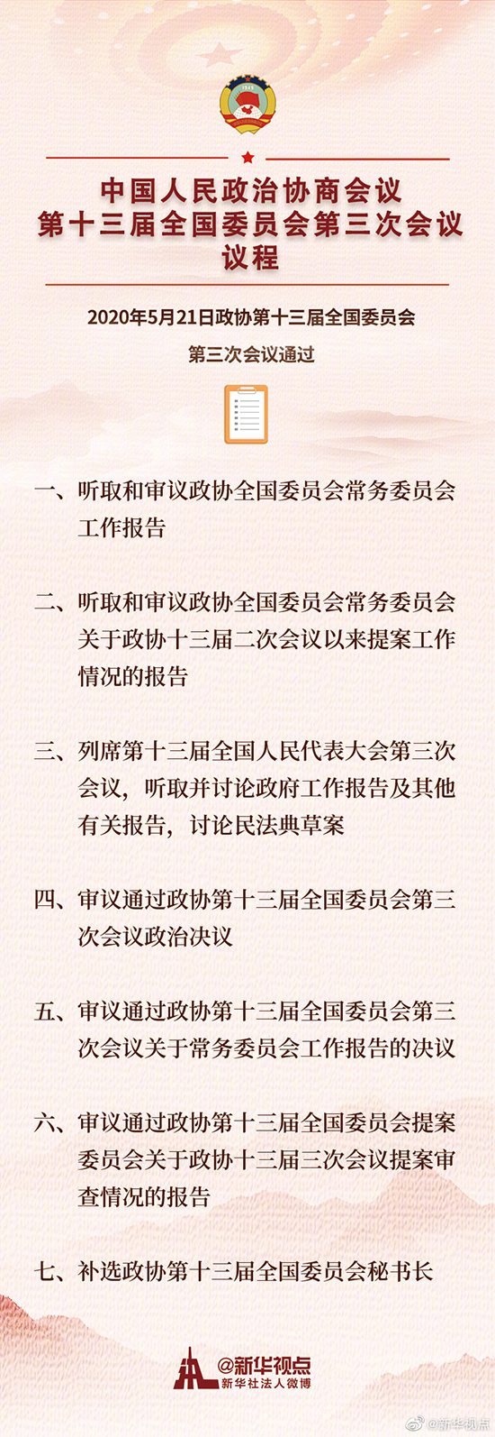 中國人民政治協(xié)商會議第十三屆全國委員會第三次會議議程-新華網(wǎng)
