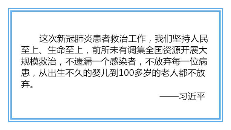 “什么叫人民至上?這么多人圍著一個病人轉,這真正體現(xiàn)了不惜一切代價。”總書記說。