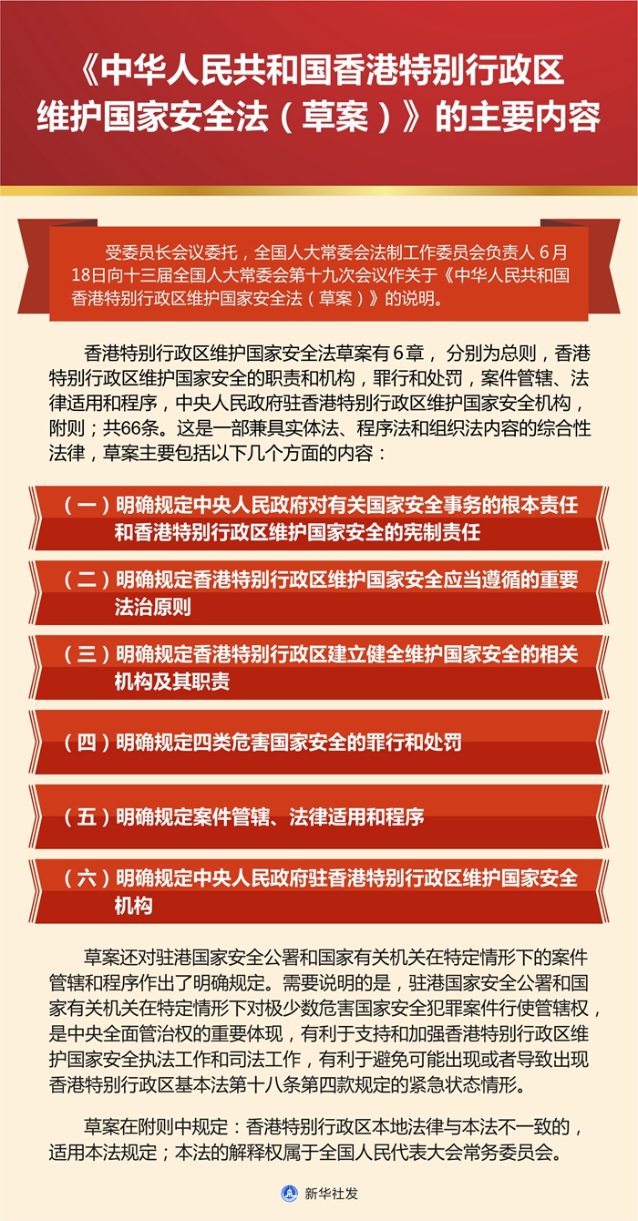 新華社北京6月20日電 受委員長(zhǎng)會(huì)議委托,全國(guó)人大常委會(huì)法制工作委員會(huì)負(fù)責(zé)人6月18日向十三屆全國(guó)人大常委會(huì)第十九次會(huì)議作關(guān)于《中華人民共和國(guó)香港特別行政區(qū)維護(hù)國(guó)家安全法(草案)》的說(shuō)明,摘要如下。
