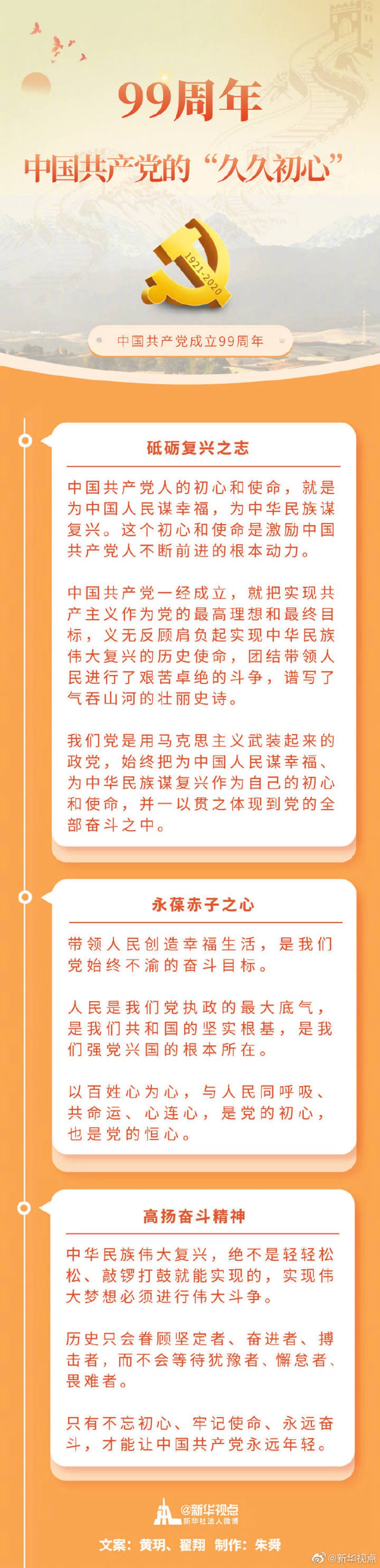 新華社北京6月30日電? 題:砥礪復(fù)興之志 永葆赤子之心——寫在中國(guó)共產(chǎn)黨成立99周年之際