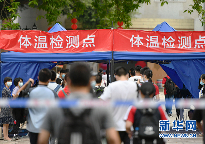 7月7日,在福州第二中學(xué)考點(diǎn),考生進(jìn)入考場(chǎng)前有序通過體溫檢測(cè)點(diǎn)。 當(dāng)日,2020年高考拉開帷幕。 新華社記者 魏培全 攝